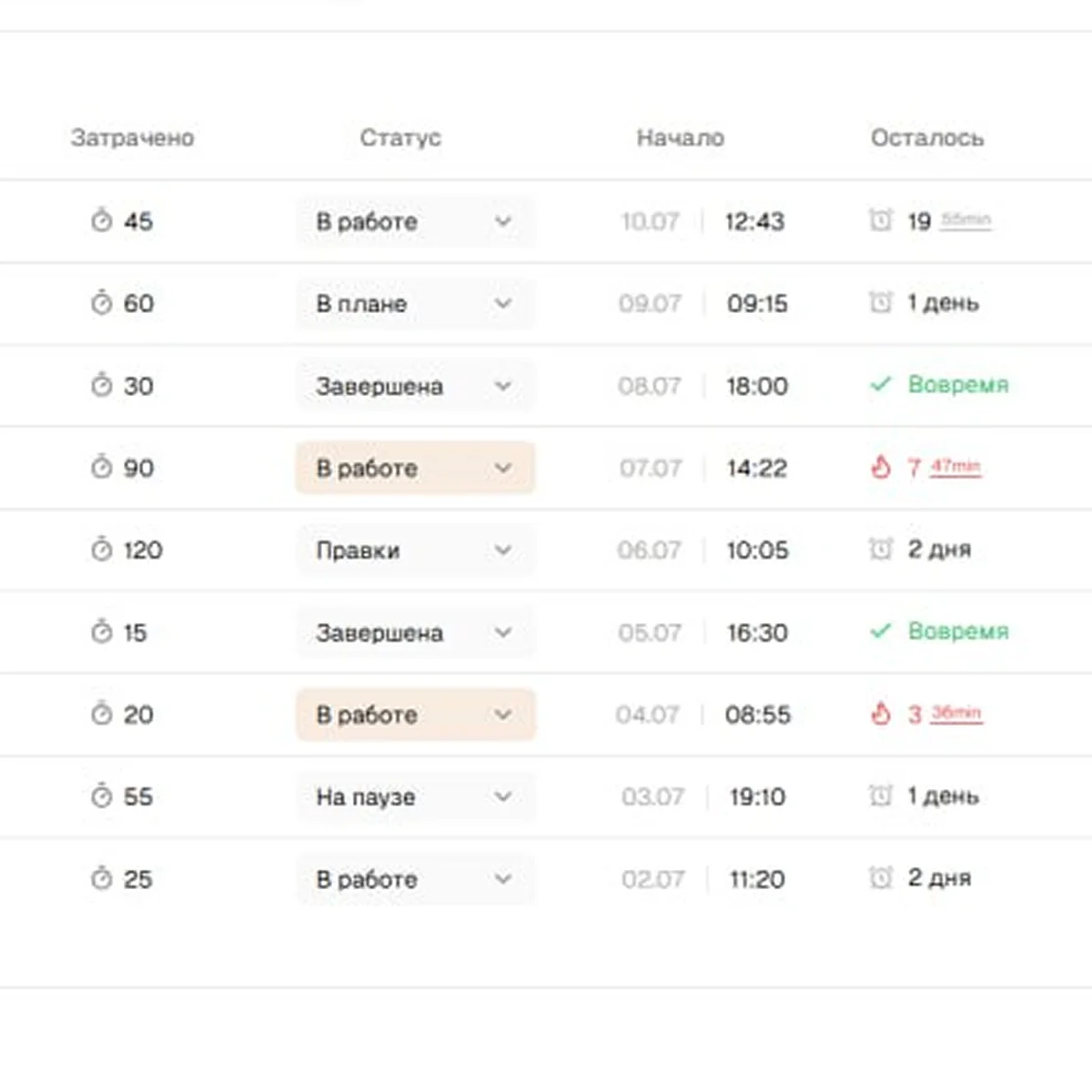 Минималистичный таск-трекер: время по задачам, проектам и клиентам считается автоматически в фоне.