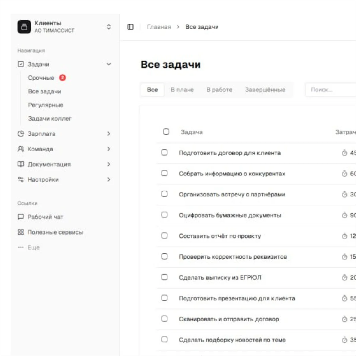 Автоматический расчёт зарплаты по финмодели и онлайн-отчёт клиенту по выполненным задачам.